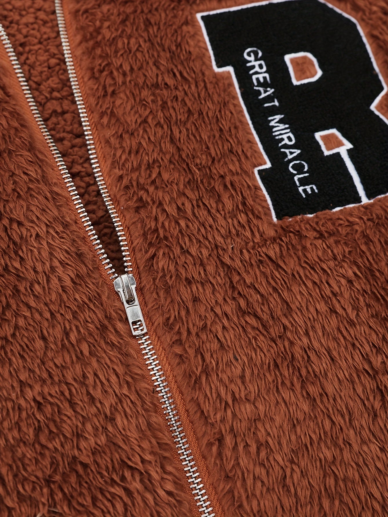 Eigenschaften: Sherpa-Material, Varsity-inspirierter Bomber-Schnitt, Reißverschluss, gemütliche Passform