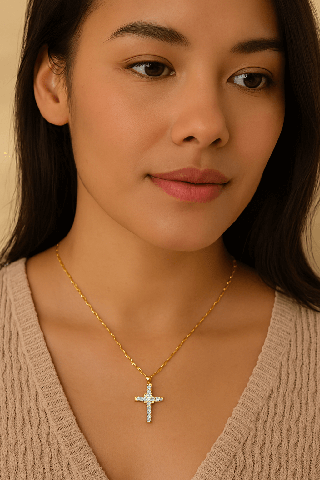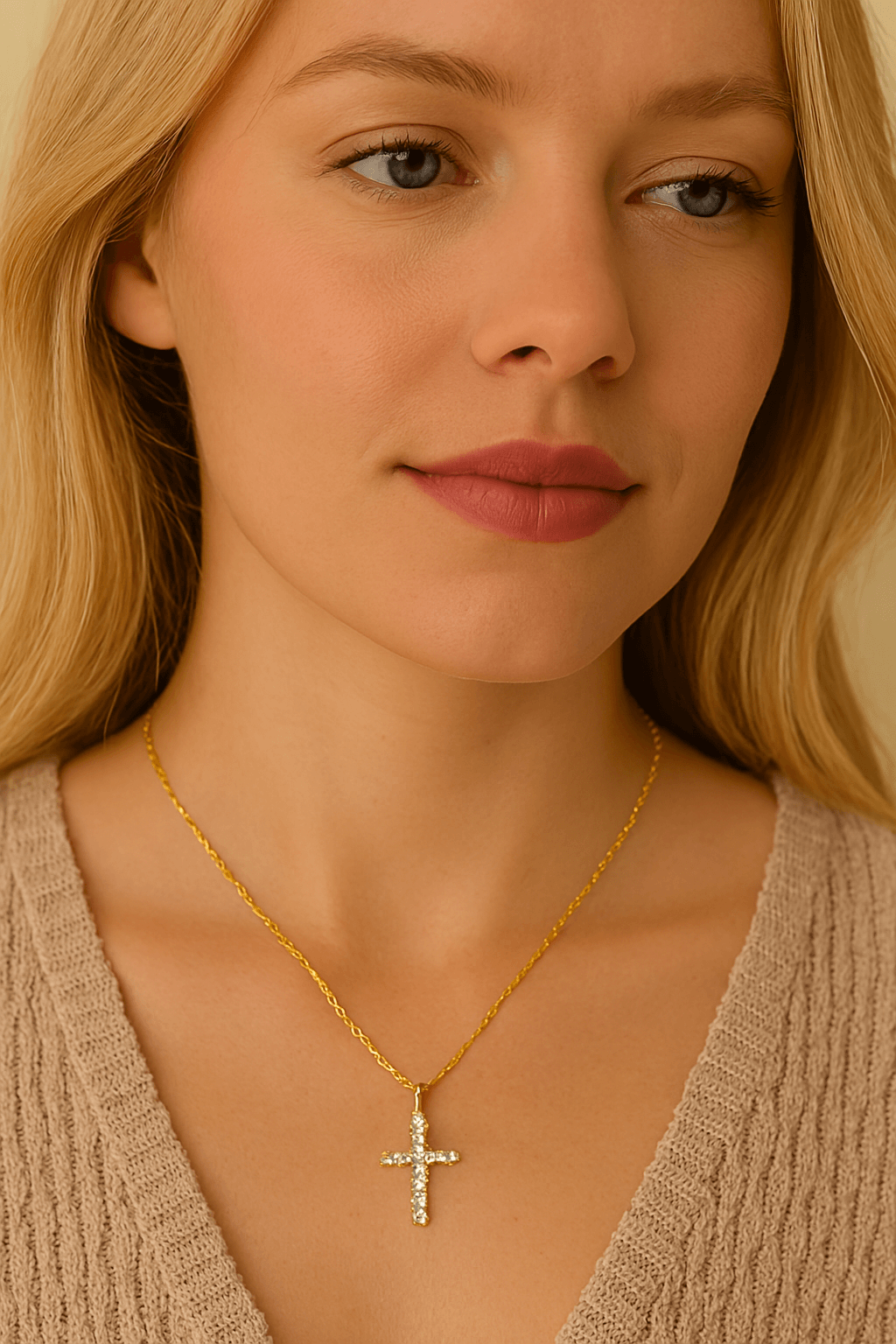 Vergoldete Zirkonia-Kreuzkette mit Anhänger für Frauen